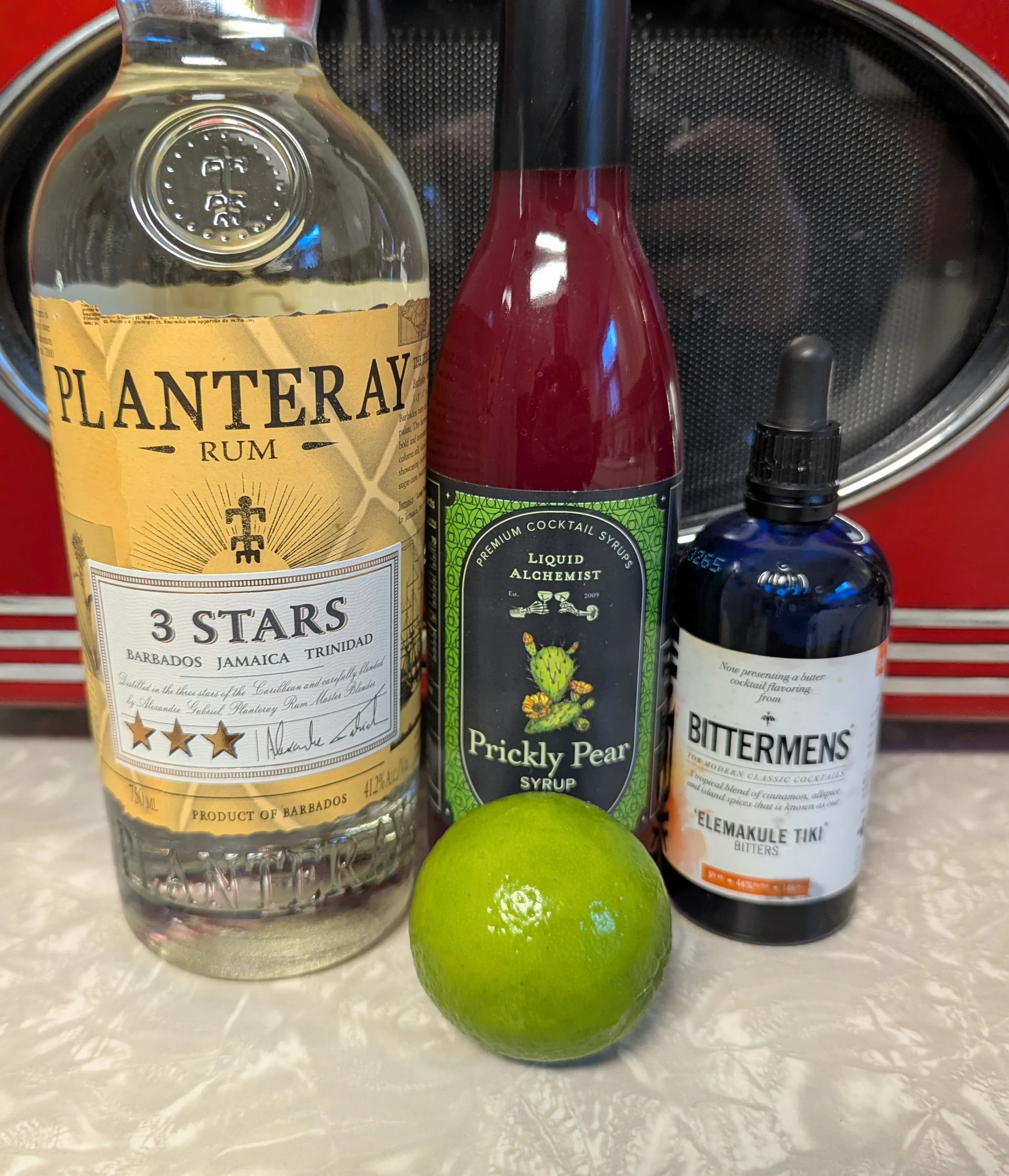 I found a recipe online that I thought sounded amaaazing, a rum old fashioned with prickly pear, lime and (my favorite) tiki bitters.